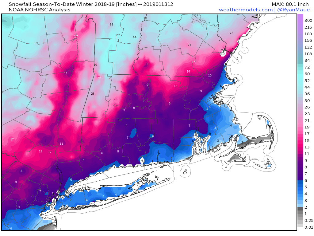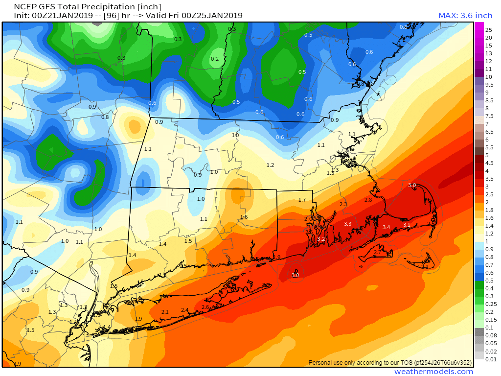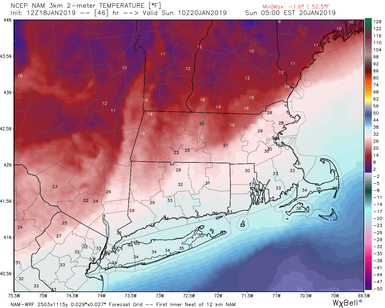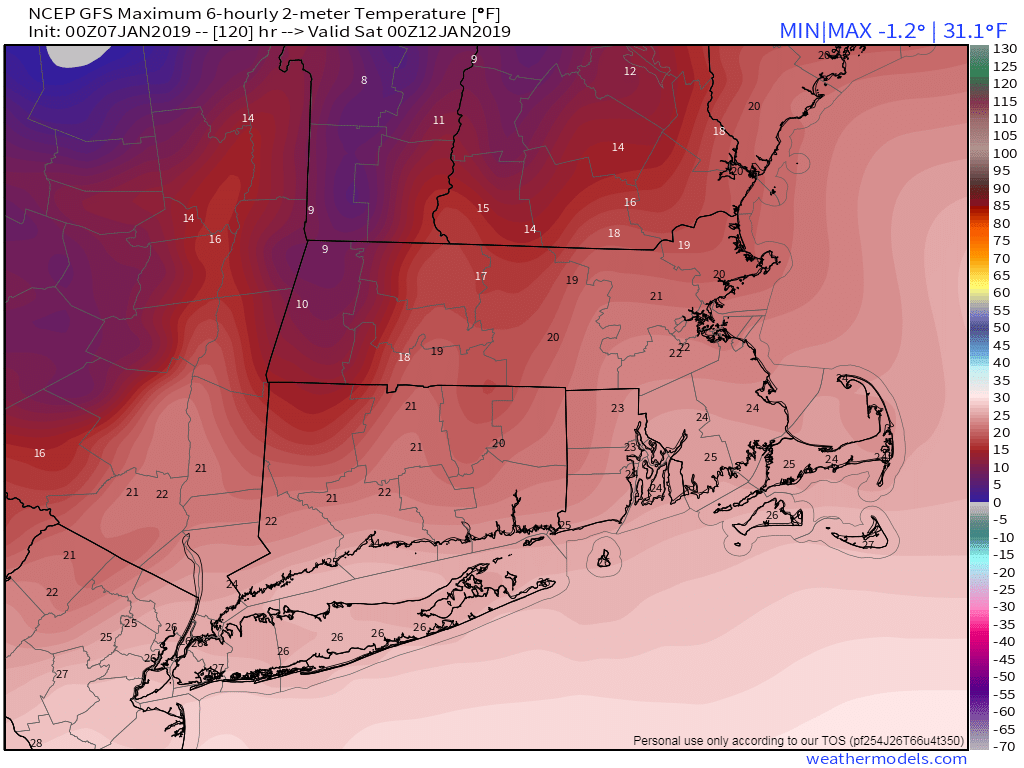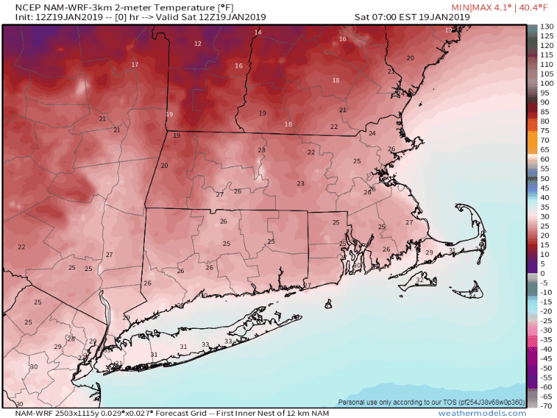Tuesday: Cloudy with light snow developing in the afternoon, quickly changing to rain south of Boston. High 30-37.