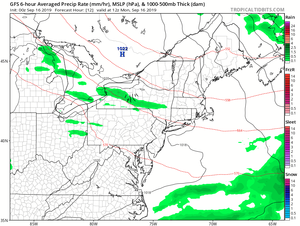 We start the week off with high pressure in control, keeping us on the cool side today and Tuesday. Temperatures will actually be a little bit below normal for mid-September. The cool and dry weather won’t last though, as a warm front moves through Tuesday night, likely producing a few showers as it comes through. Once the front its through, we’ll have some warm and somewhat humid conditions around for Wednesday. We will have another cold front coming through late Wednesday or early Thursday. This front may produce another round of showers and thunderstorms. Thursday’s temperatures will be determined by when that front comes through. The longer it takes, the better the chance that Thursday is also a warm day, which is the way we’re leaning right now.