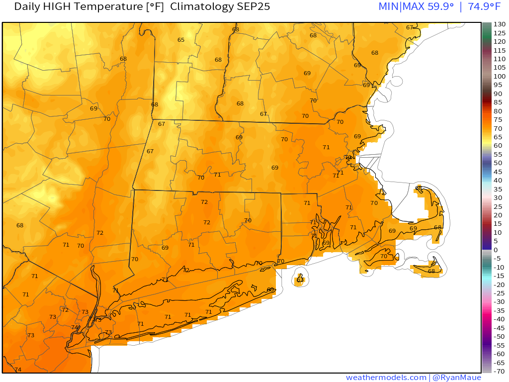 Average high temperatures for late September are right around 70 degrees for this area. Image provided by Weathermodels.com