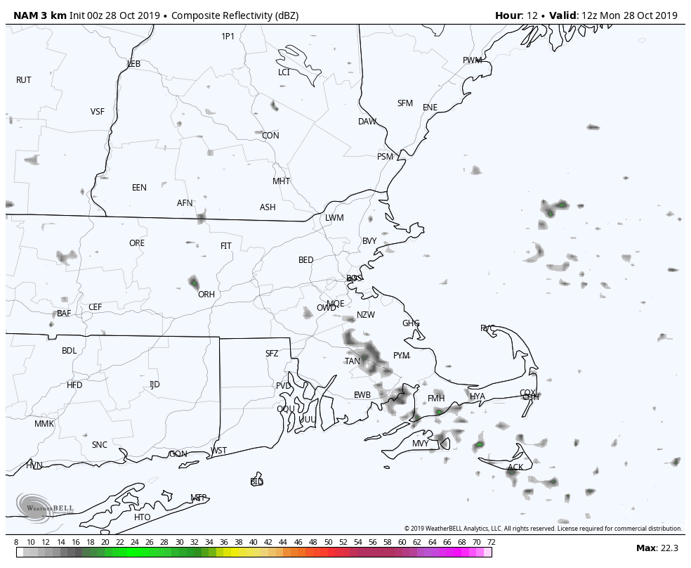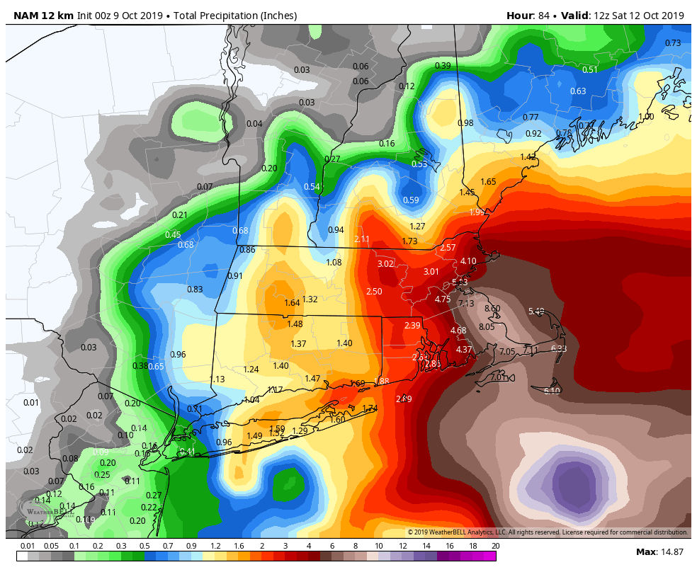 The low starts to pull away Monday night and high pressure starts to build into the Canadian Maritimes, so things get better for Tuesday and Wednesday, right? Sorta. We’ll still have some residual moisture around thanks to easterly winds, that’ll keep clouds and maybe some drizzle or a few showers around. A weak trough of low pressure may bring in some additional showers Tuesday night into Wednesday.