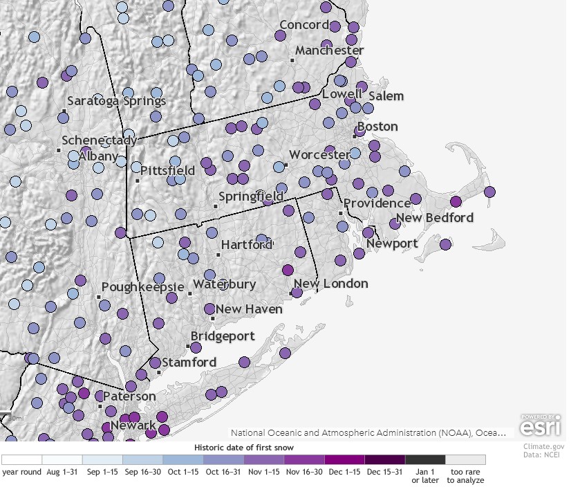 There’s still plenty of uncertainty with this storm, and at this point, we’re not sure which way to lean. On one hand, some of the models have been indicating for quite some time now the possibility of snow for parts of the area somewhere in the November 9-13 time frame. However, they’ve been changing with the details on nearly every run, so while our confidence has growing that we’d some “some” snow during that period, we really couldn’t go into deeper detail than that. At this point, we still can’t, because there is still little agreement with the models. However, should we end up dealing with a storm system, the closer you are to the coast, the less likely you’ll see accumulating snow. Ocean temperatures are still in the upper 40s to lower 50s, so a wind blowing off the ocean would bring milder air in along the coast. Plus, the ground is still relatively mild. Sure, we could see some snow even at the coastline, but the better chance for accumulating snow would be north and west of Boston. The farther inland, the better the odds. Obviously, we’ll keep an eye on the evolution of this system as the week goes on, and if needed, will write a special blog post later in the week.