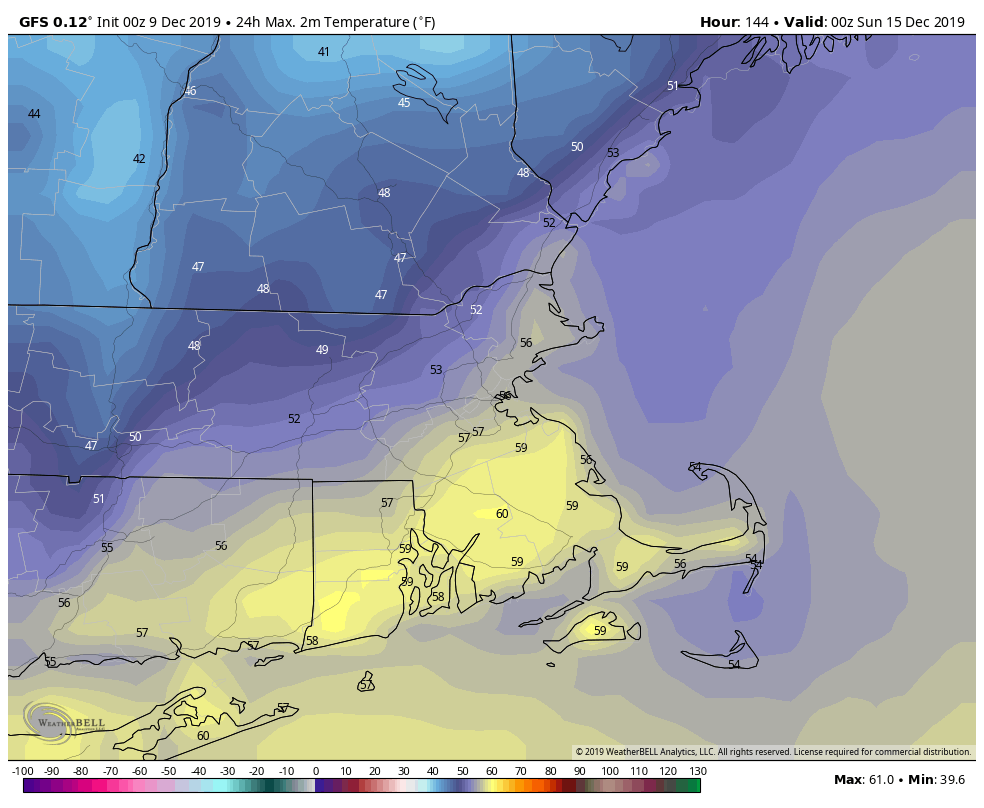 The next storm system moves into the Great Lakes Friday into Saturday. Oh great, another ice storm, right? Nope. This time, it looks milder (much milder on some models), so we’re looking at mainly rain, probably not a lot of it though. An early look at the weather for Foxborough Saturday evening (don’t get us started on the fact there will actually be a game this weekend), is for partly cloudy skies, light winds, and temperatures in the lower 40s. Drier and colder air settles in for Sunday.