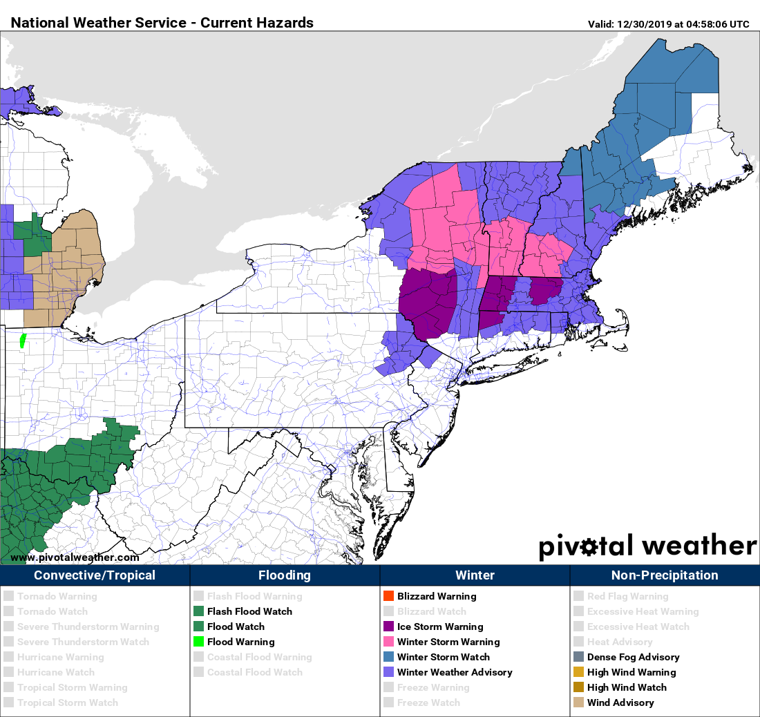 Monday night: Precipitation changing to all rain most areas, except sleet and freezing rain continue across central New Hampshire. Temperatures will slowly rise overnight.