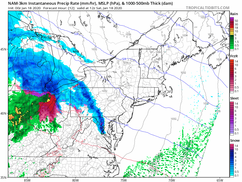 A cold and very dry airmass is in place across New England to start Saturday, thanks to a high pressure area moving across Northern New England. Temperatures are starting the day in the single numbers and teens, with dewpoints near or below zero. Meanwhile, a storm system will be moving out of the Great Lakes and heading for Northern New England later today. That will be out weather-maker for tonight and early Sunday.