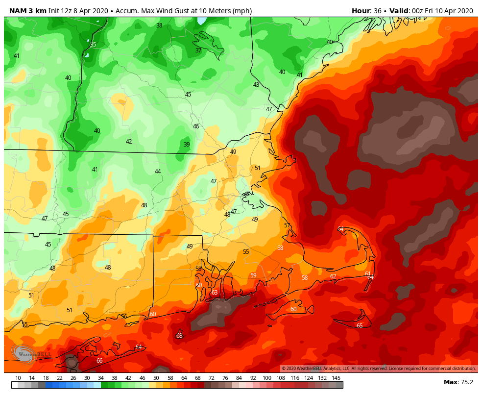 Thursday: Cloudy and windy with rain developing, possibly heavy at times late in the day and at night. High 49-56.