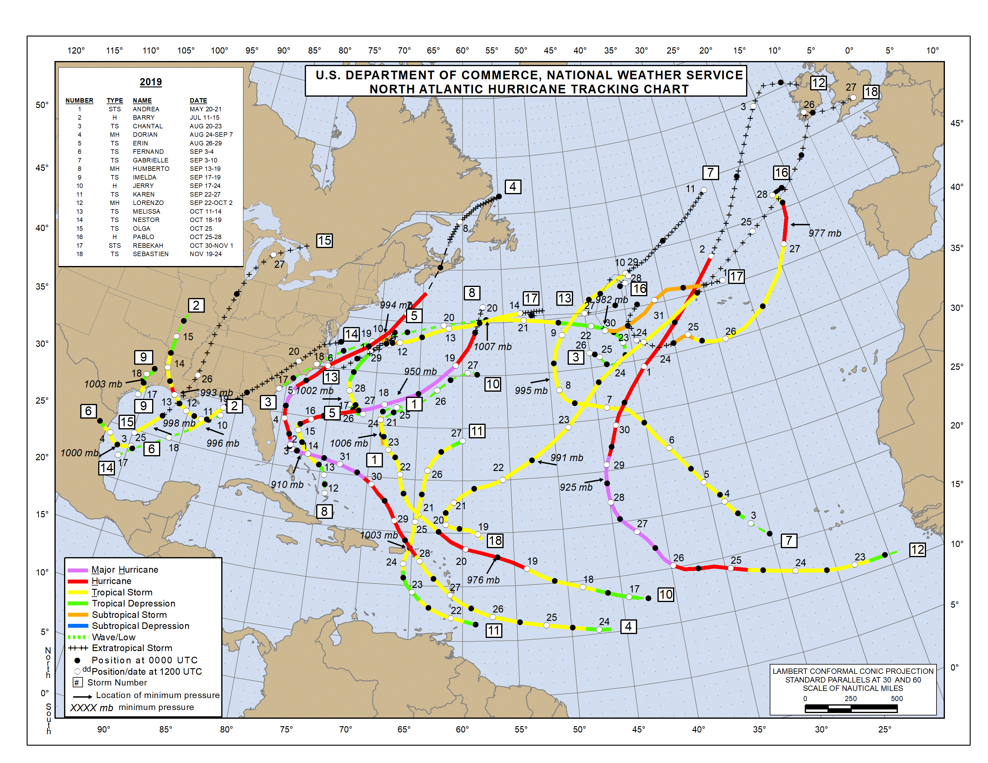 A busy season does not always mean that multiple storms (or any storms for that matter) will impact the United States. In 2010, 19 named storms were observed in the Atlantic, 12 of them became hurricanes, and 5 were major hurricanes. Only one storm made landfall in the United States, and that was Bonnie, which was a minimal tropical storm at landfall. On the flip side, an inactive year doesn’t mean much for landfall probabilities as well. Only 7 named storms formed in 1992, and the 1st one didn’t develop until August 16. That storm, however, was named Andrew, and it made landfall just south of Miami as a category 5 storm.