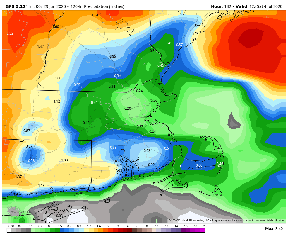 That upper-level low will remain nearby for Tuesday and Wednesday, so we’ll have similar conditions both days with showers and thunderstorms popping up each afternoon, produce a few downpours and maybe a little hail, but nothing widespread is expected. Temperatures will be on the cooler side, possibly even a little below normal for the end of June/beginning of July, with highs only in the 70s for most of us, with some coastal locations possible staying in the 60s thanks to a wind off the water.