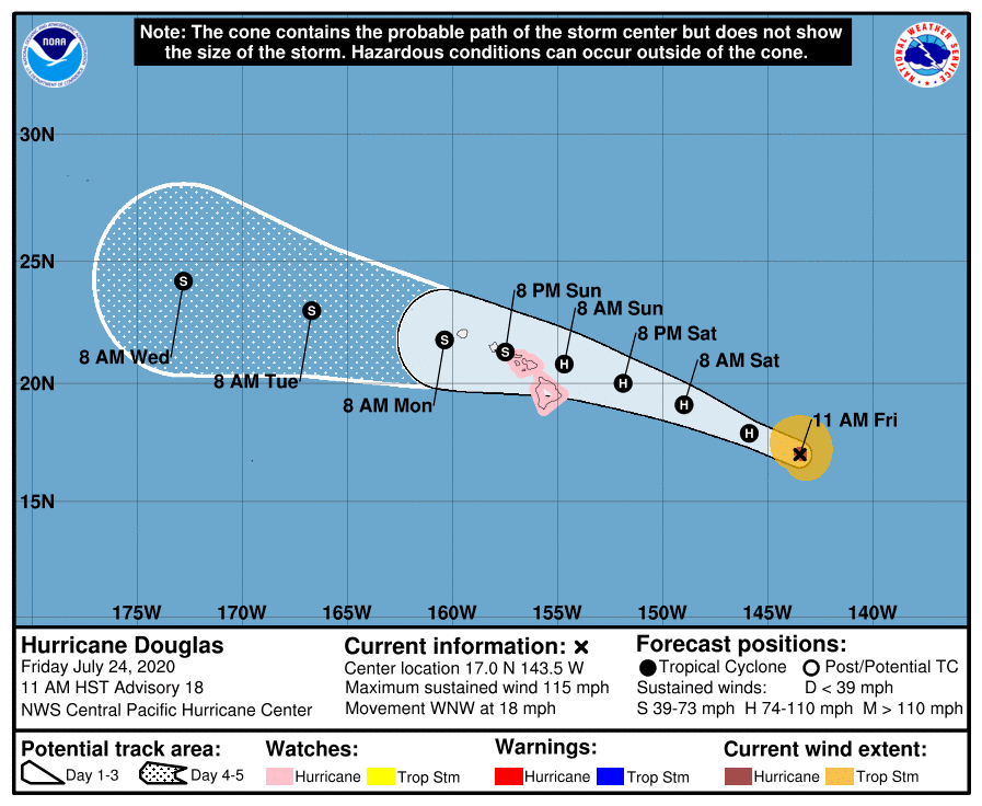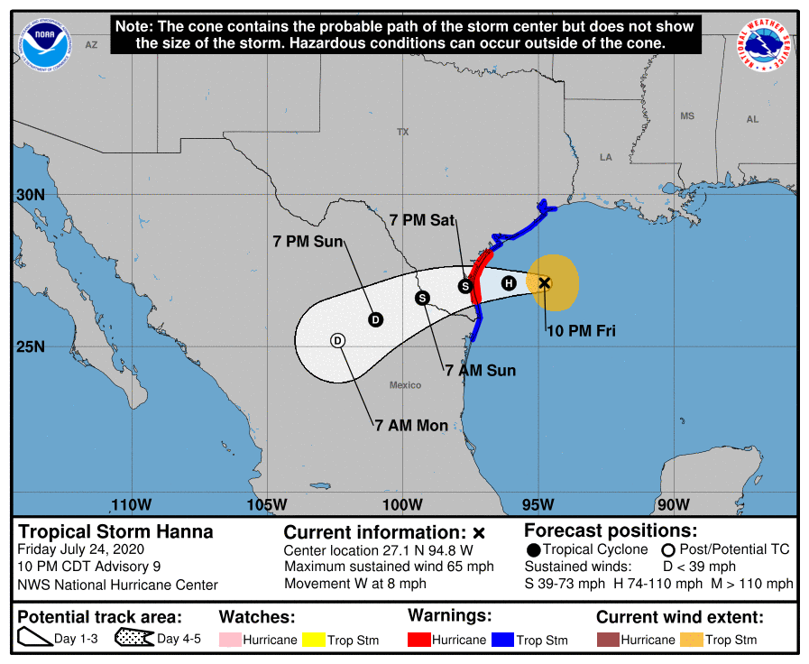 As of early Friday morning, Isaias was centered about 45 miles southeast of Great Inagua Island in the southeastern Bahamas, and was moving toward the northwest at 18 mph. Maximum sustained winds have increased to 80 mph based on recent data from reconnaissance aircraft. A Hurricane Warning is in effect for the northwestern, central, and southeastern Bahamas.Tropical Storm Warnings remain in effect for the entire Dominican Republic, the north coast of Haiti and the Turks and Caicos Islands. A Tropical Storm Watch is in effect for the east coast of Florida from Ocean Reef to Sebastian Inlet.