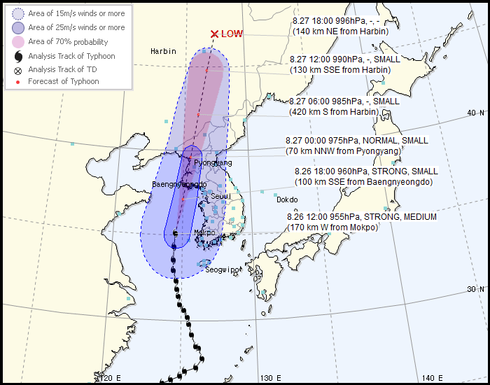 In the Western Pacific, Typhoon Bavi has maximum sustained winds near 110 mph as it moves into the Yellow Sea. The current forecast calls for the storm to make landfall in western North Korea this evening, then rapidly weaken as it moves inland into extreme northeastern China. As with Laura, strong winds and storm surge will have significant impacts on the region, but rainfall totals of 4-8 inches and locally heavier will result in flooding in many areas.