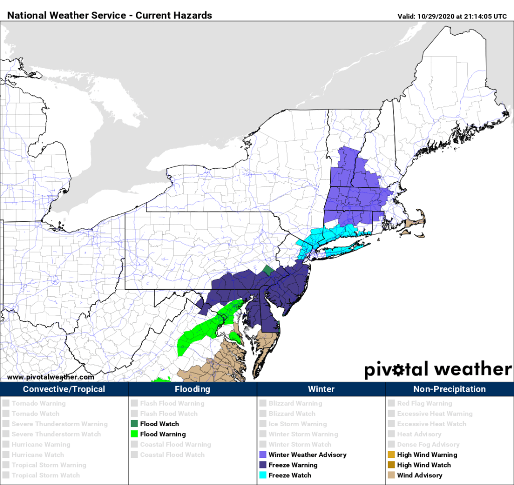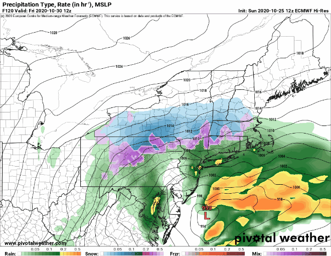 Once the system pulls away, it will clear out as we mentioned before. Temperatures will drop quickly, likely bottoming out in the 20s across much of the region, maybe even upper teens in some spots. Any roads that are still wet during the evening may start to ice up, especially bridges, overpasses, and elevated roadways. Keep this in mind if you’ll be out Friday night or early Saturday morning. As for Saturday, it’ll be a rather chilly Halloween despite sunshine. High temperatures will only get up into the middle to upper 40s at best.