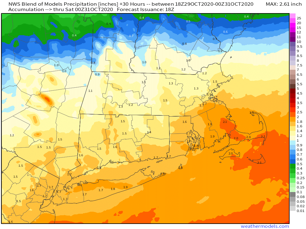 The weekend starts off on a stormy note as the remains of Zeta pull away tonight while a second system quickly follows. The heaviest rain is expected this evening and the first part of tonight from Zeta’s remains, but as it pulls away, it will draw some colder air into the region just as the second storm moves in. As that colder air moves in, we’ll see the rain mix with and change over to sleet and wet snow, first in the hills of southwestern New Hampshire and central Massachusetts early Friday morning, then across the rest of southern New Hampshire and eastern Massachusetts by daybreak or shortly thereafter. Everything should wind down by early afternoon, followed by rapid clearing and diminishing winds (more on this in a moment).