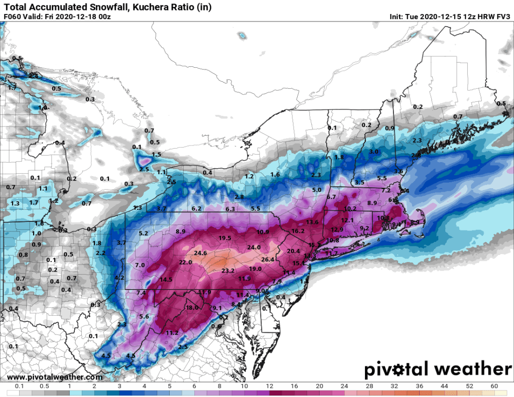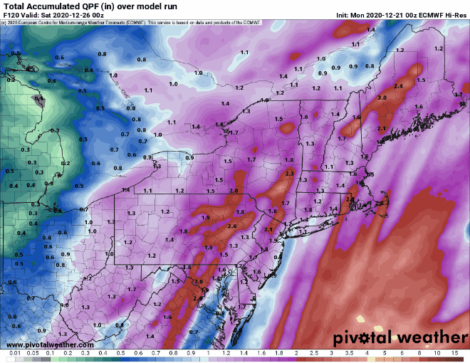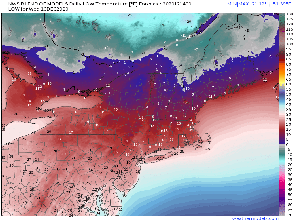 A warm front will move across the region tonight, but little precipitation will accompany it. What you will notice is that temperatures will bottom out this evening, then rise as we head through the overnight hours. Low pressure will move into the St. Lawrence Valley early on Thursday, dragging a cold front across the region during the morning. Some showers will accompany that front, but they’ll be gone by midday. High pressure then builds in, allowing skies to clear out in the evening. So, if you have any New Year’s Eve plans, weather won’t be an issue, though it will be on the cold side, as you’d expect at the end of December.