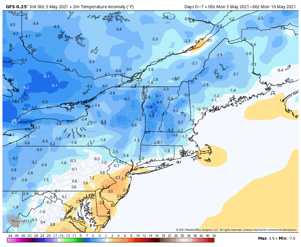 As we head into the end of the week and the weekend, things get unsettled again. A coastal storm will likely impact the region, but the models don’t completely agree yet on what that impact will be, or exactly when it will be. Friday and/or Saturday will likely feature a period of rain, possibly heavy, some gusty winds, and cool temperatures. How much rain, how much wind, and how cool it will be are details that we don’t have a good handle on yet. In fact, at least one model shows the potential for some wet snow to mix in, especially over the hills of central New England. While this wouldn’t be unheard of this late in the season, we’re not expecting it to occur, though we’re not completely ruling it out either. As for next Sunday, the coastal storm should be out of the picture, but another system may be approaching from the west, as our active pattern is expected to continue for quite some time.