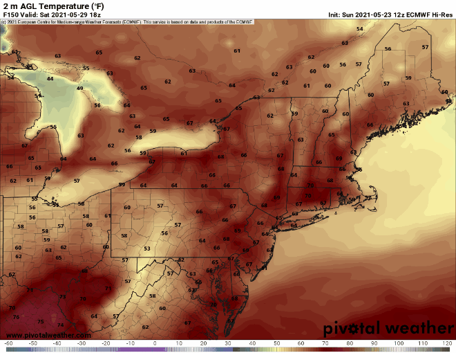 High pressure builds in behind the front on Thursday with drier and cooler conditions. This brings us to the Memorial Day Weekend. There is still some uncertainty among the models as to what we can expect next weekend. The models are in decent agreement that we’ll have high pressure centered over southeastern Canada while low pressure moves out of the Midwest and into the Mid-Atlantic states before spending much of the weekend south of New England while only slowly drifting eastward. They mostly agree that this means we’ll be on the cool side from Friday into Monday, with temperatures mainly below normal. What they don’t agree on is exactly where the low pressure system tracks, and whether it will send any precipitation our way (which also has an impact on the temperature forecast). For now, we’re going to lean on the dry side and be optimistic, but there is a chance that the long weekend could feel more like mid-Spring than the “traditional start of summer.” We should have a better handle on it for our Weekend Outlook on Thursday.