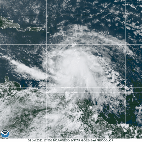 Hurricane Elsa formed as Tropical Depression Five late Wednesday night well east of the Lesser Antilles, and became Tropical Storm Elsa on Thursday. It rapidly intensified into a hurricane Friday morning as it approached Barbados. As Elsa crossed the Windward Islands Friday morning/early afternoon it produced wind gusts as high as 86 mph on Barbados and 79 mph on Saint Lucia. This is the earliest in the season that a storm has hit Barbados, and it is the 2nd earliest Hurricane ever in the eastern Caribbean, trailing only an unnamed storm from 1933.