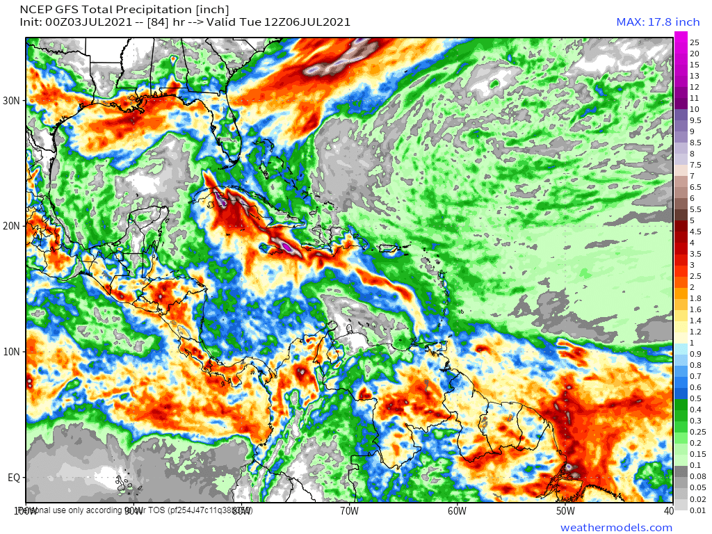 As the storm slows down, it increases the chances for heavy rainfall across southern portions of Hispaniola, eastern and southern Cuba, and parts of Jamaica. Rainfall totals of 6-12 inches and locally heavier will lead to flooding and mudslides.