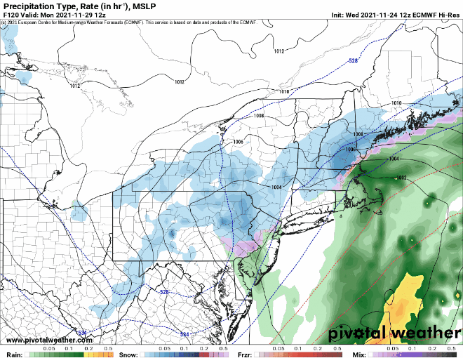 You’ll recall in our Weekend Outlook we talked about the potential for our first accumulating snow of the season for Sunday night into this morning. Well, before that could happen, another threat materialized for Friday night into Saturday morning that did coat the ground with snow across parts of the region, and this morning’s system was a complete dud. Having said that, much of this week looks quiet despite the pattern actually being fairly active, and we’re fairly confident in that (for now).
