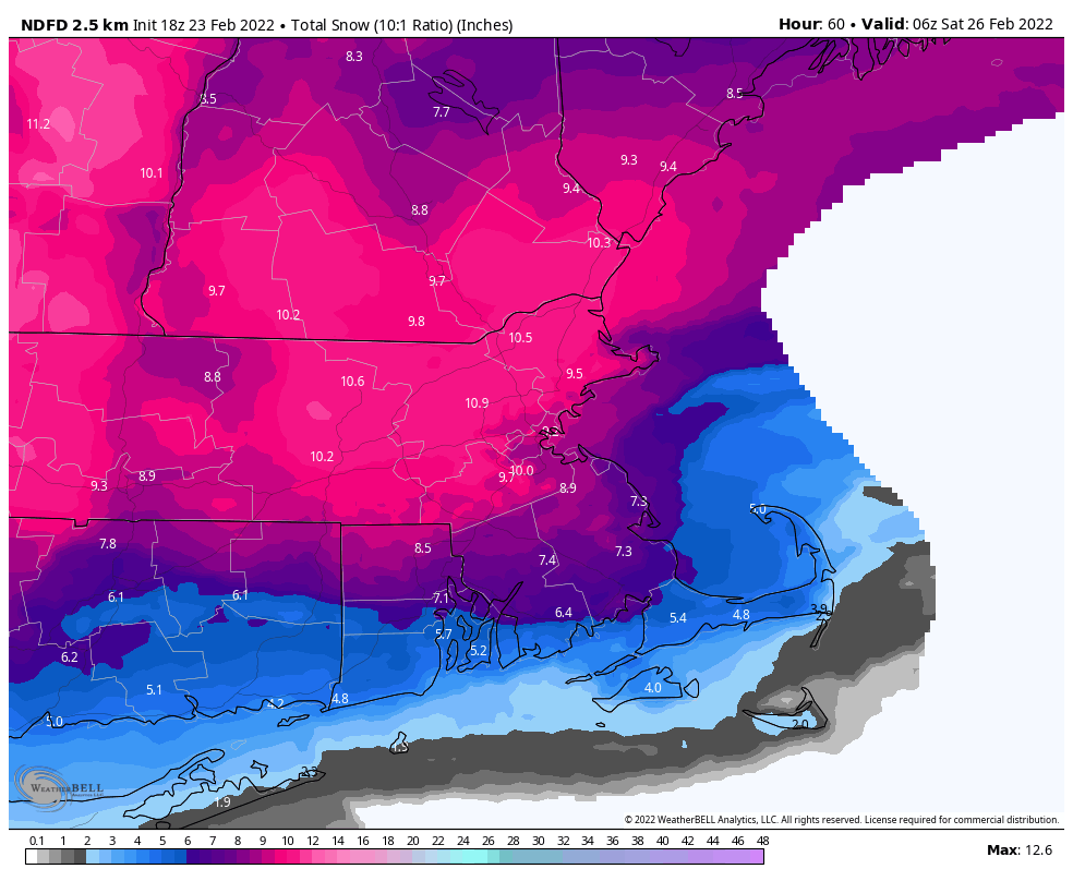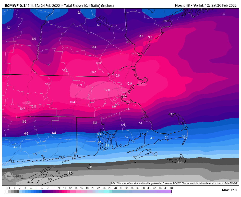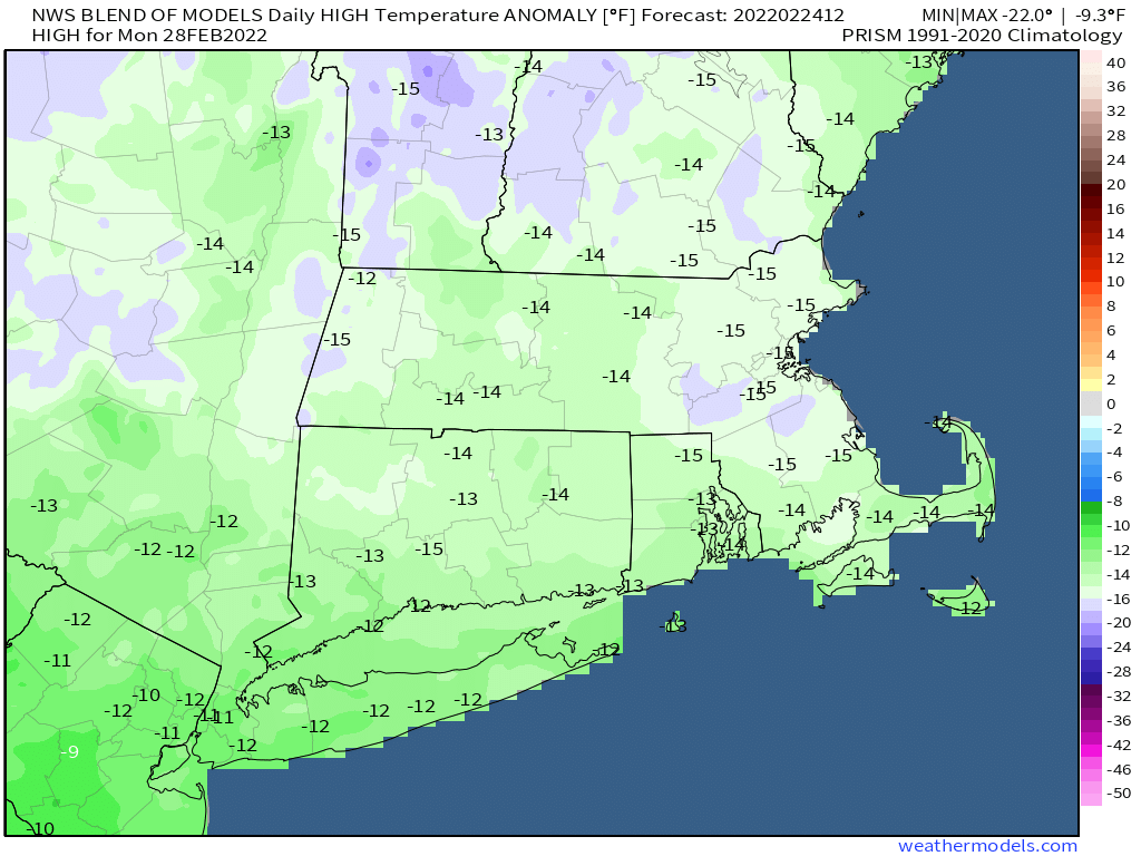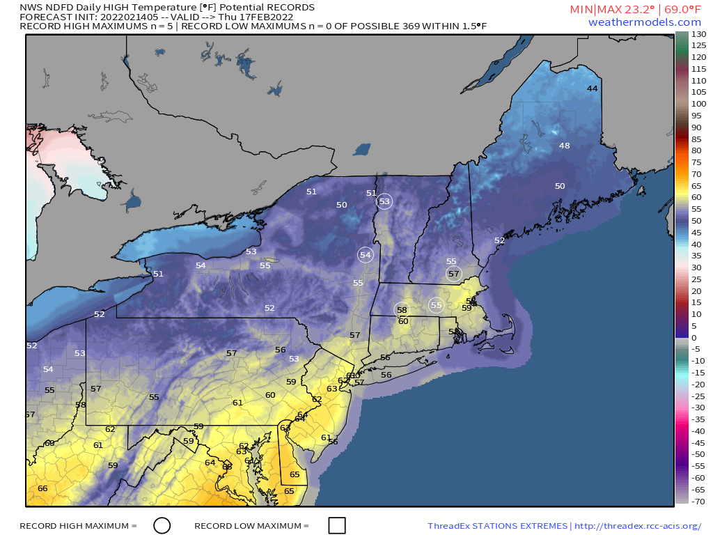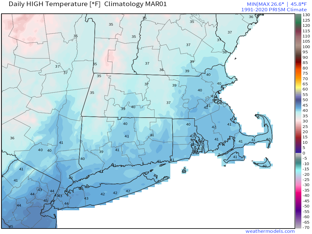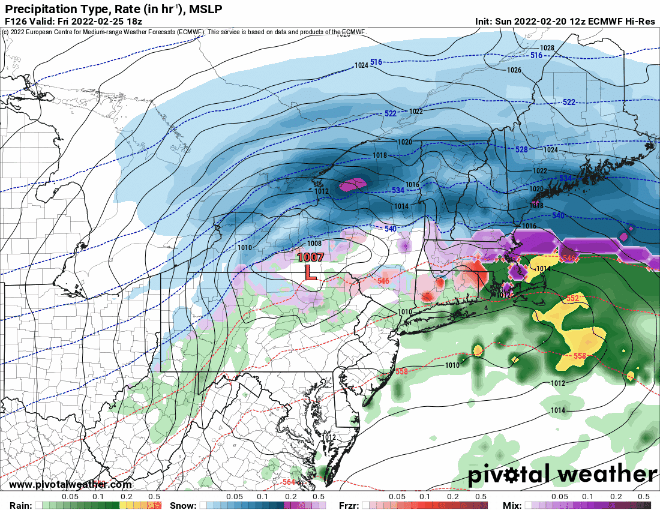 By Saturday, the high will slide off to the east and a warm front will approach the region, with moderating temperatures. This is where things could get complicated. Low pressure will head into the Great Lakes, whie high pressure builds into Quebec. This may prevent that warm front from actually moving through the region, keeping us chilly for Saturday night and Sunday. Meanwhile, moisture will start to stream into the region ahead of that warm front. This could result in a messy mix of snow, sleet, freezing rain, and/or rain. It’s still far too early to try and pin down any details, but for now, Sunday looks like it could be messy.