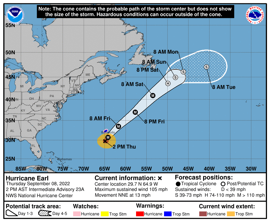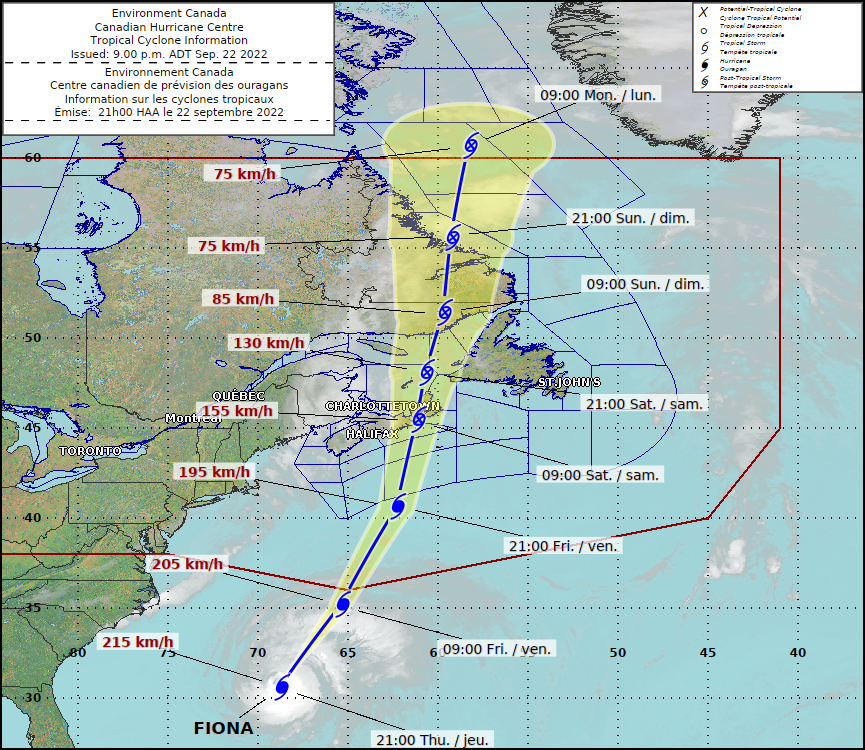 Forecast track for Hurricane Fiona. Image provided by the Canadian Hurricane Centre.