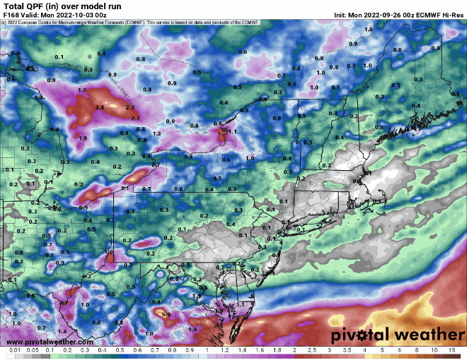 So, how does that impact our forecast next weekend? Well, an earlier turn would likely keep the storm off to our south, with high pressure holding on over the Northeast, keeping us drier. A landfall farther north likely results in the storm rapidly weakening over land, but increases the possibility that the remains move up the Appalachians and bring some rain, possibly heavy, in here or across northern New England next weekend. At this point, it’s just too early to figure out which scenario may occur, so we’re going to be very vague in the forecast for now.