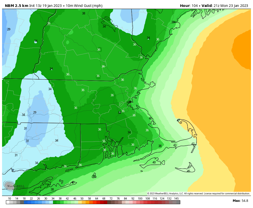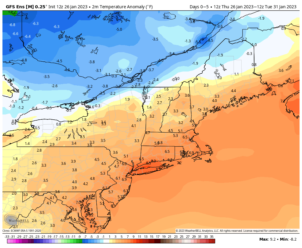A strong cold front will cross the region Friday morning as a rather large high pressure system settles into southern Ontario. Behind the front, the coldest air we’ve seen in several years will pour into the region. Temperatures will likely start the day in the 30s, but will rapidly drop during the afternoon, likely reaching the single digits by evening, and dropping below zero across most of the region overnight. By Saturday morning, temperatures may be as cold as -10 to -15 north and west of Boston, with even colder temperatures possible. But wait, if that’s not cold enough, gusty northwest winds will create wind chills of -20 to -30. Saturday morning might be a good day to skip that morning run, or you’ll probably want to make sure the dog takes care of business quickly. Despite sunshine, temperatures likely stay in the single digits or lower teens during the daytime. As the high slides by to the north, winds may shift into the north or northeast, which could allow for some ocean-effect snow showers to develop across Cape Cod. As the high continues eastward, winds will shift into the southeast and eventually south, bringing a quick end to our arctic blast. Temperatures will continue to rise Saturday night, and should get well into the 30s and even 40s again across the region on Sunday.