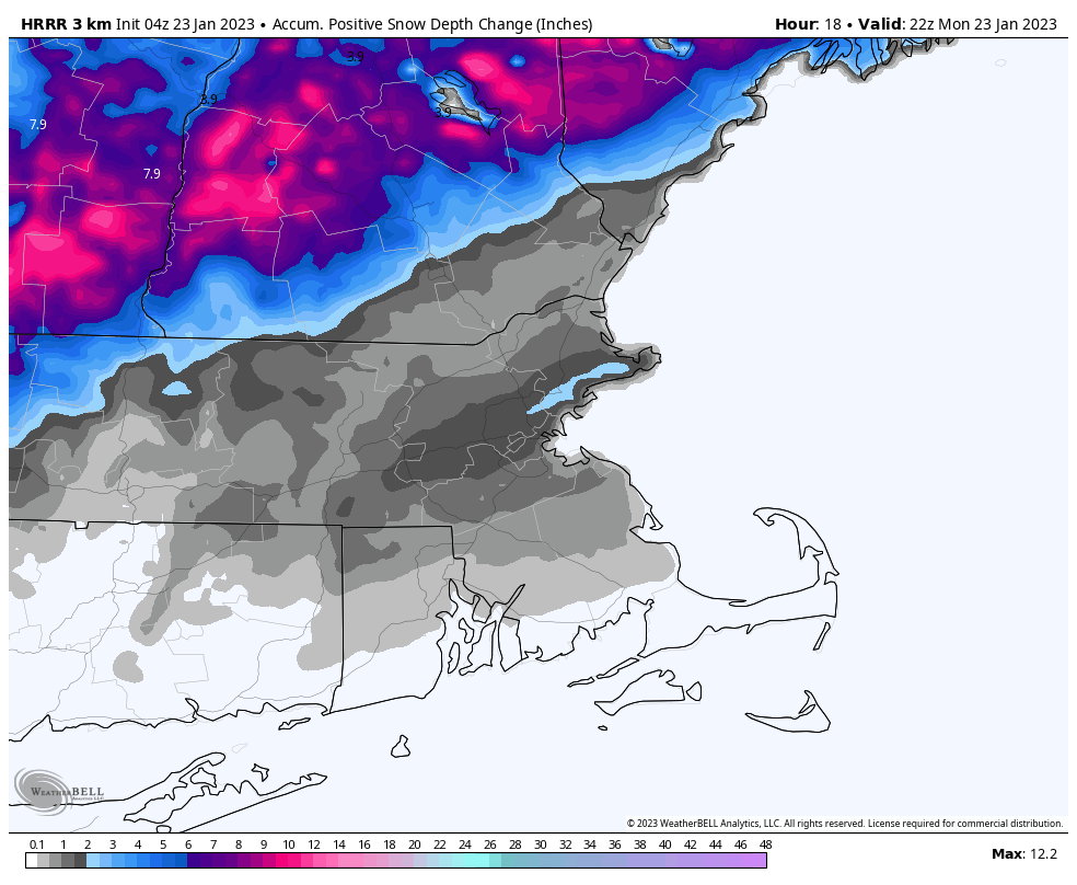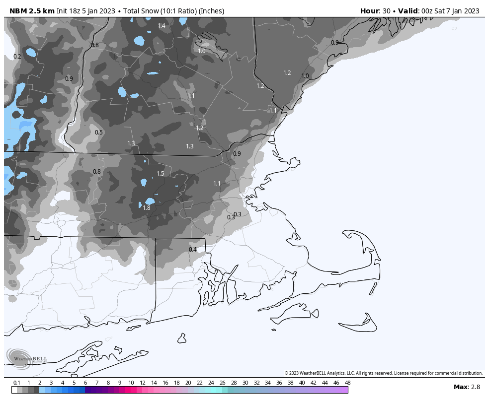 Saturday: Plenty of sunshine, breezy, and bitterly cold, except for a few snow showers possible on Cape Cod. Morning low -1 to -8 south of the Mass Pike, -9 to -16 north of the Pike. High 6-13 during the evening.