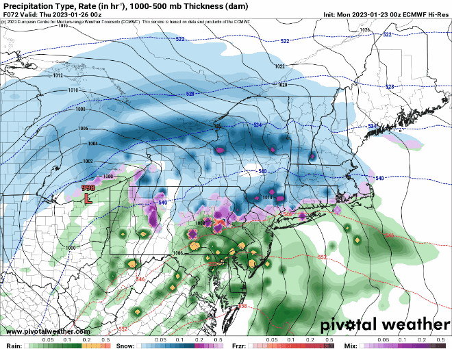 The week starts off mild once again, but a cold front will move across the region later today and tonight. As the front moves through, some rain or snow showers are possible, with a few snow squalls not out of the question. High pressure builds in for Tuesday and Wednesday with drier weather and more seasonable temperatures. This will also help deflect a low pressure off to the south, which may actually bring some snow to the Mid-Atlantic states, though we could see some of the precipitation reach the South Coast. Another system passes south of the region on Thursday, spreading in more clouds, but we’ll also see temperatures start to moderate a bit. This sets the stage for what’s to come at the end of the week.