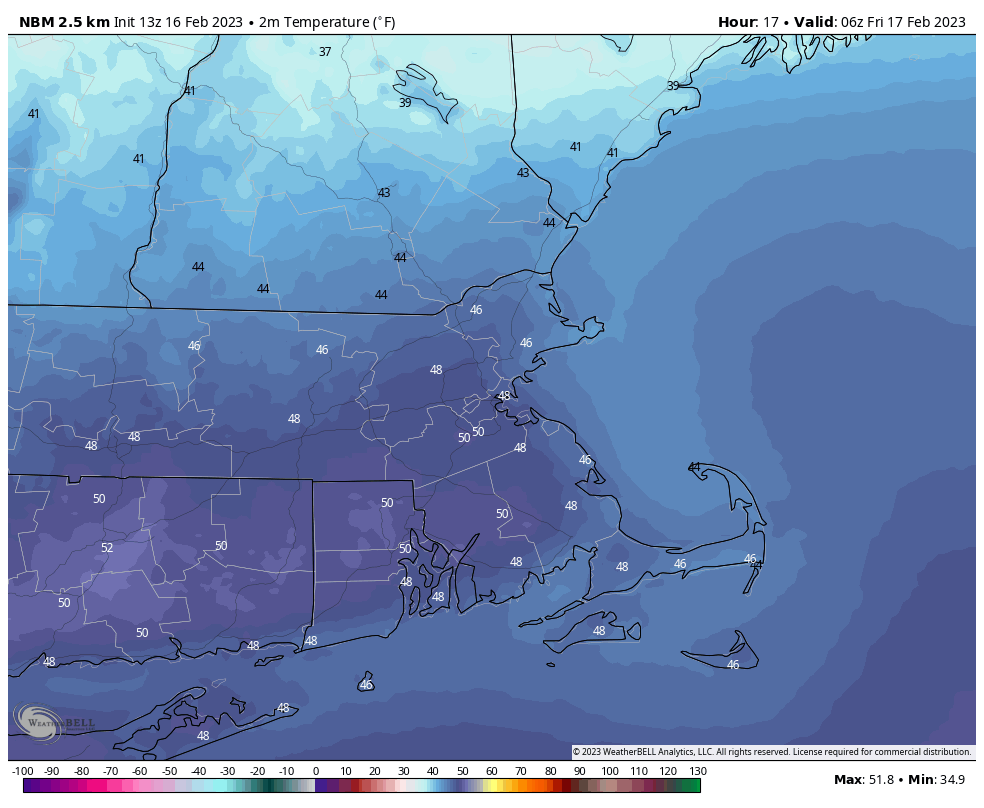 Thursday night: Cloudy and mild with some showers likely. Low 43-50 this evening, temperatures may rise a bit overnight.