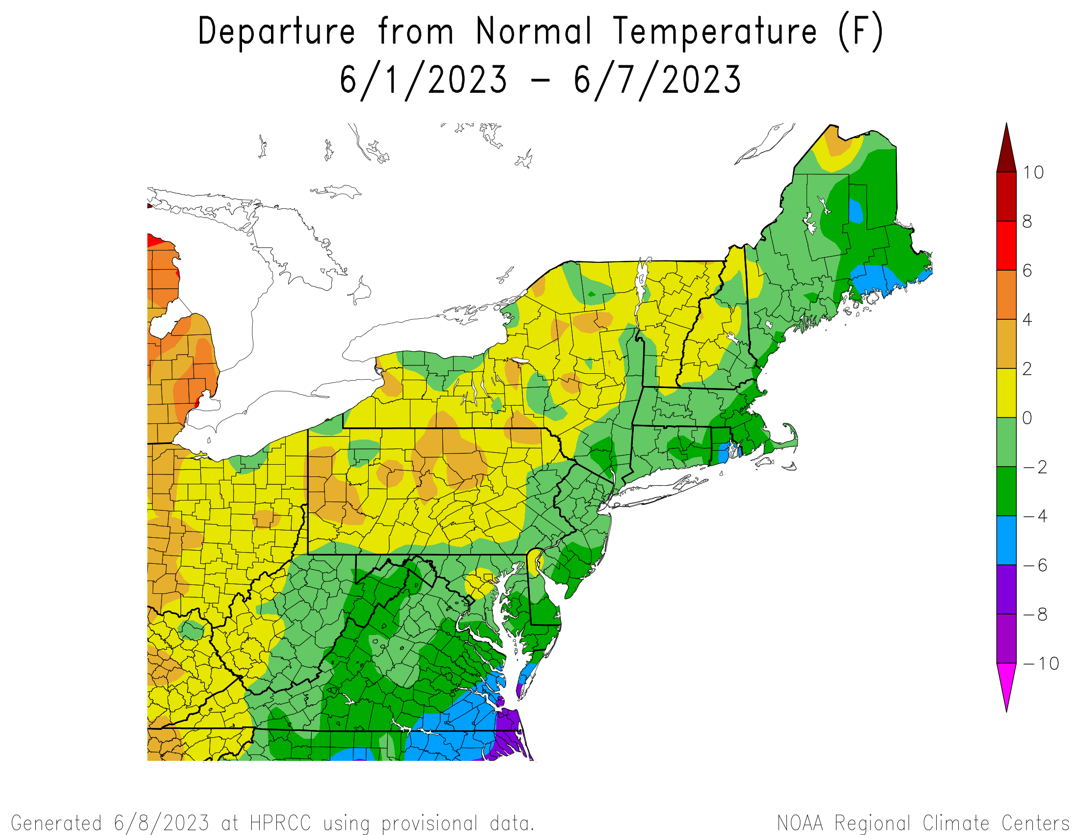 The first week of June has been a cool one across the Northeast, especially near the coast. Image provided by the Northeast Regional Climate Center.