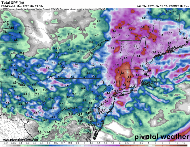 The upper-level low pressure area that has kept us cloudy and cool with occasional showers for the past several days will gradually lift out over the weekend. It will remain nearby on Friday with more clouds, some additional showers and possibly a few thunderstorms. With cold air aloft, any thunderstorms that form could produce some small hail. By Saturday, the upper-level low finally starts to move out, but it will remain close enough to produce a few more showers, especially during the first half of the day. With the low moving out, some of the smoke from the wildfires in Canada maystart to drift back into the region, resulting in hazy conditions, but for now at least, it doesn’t look anywhere near as bad as what New York has had for the past few days. High pressure builds in for Saturday night and Sunday with drier and warmer weather, but we’ll still have the smoke and haze to deal with. By Monday, another low pressure system begins to approach from the west, but it looks like any showers associated with it will hold off until late in the day or at night. This system may bring in a much-needed soaking rain for Tuesday, but we’ll wait until it gets closer for a more definitive look at that.