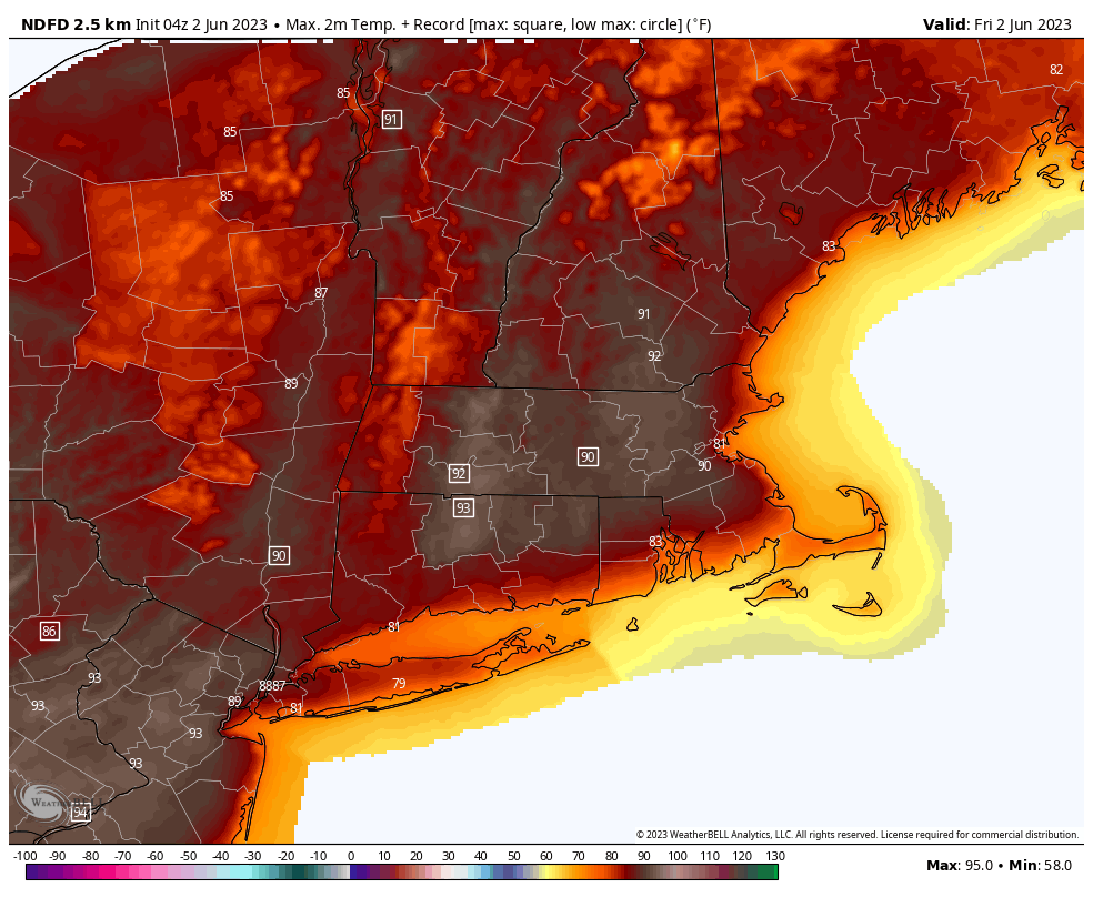 We’ve got one more warm to hot day on Friday before a backdoor cold front brings an end to the warm weather party. The front will be accompanied by showers and possibly a few thunderstorms, then once it sags southward, gusty northeast winds will usher much cooler air into the region for Saturday. In fact, the cooler air will hang around through the weekend and into Monday. The other forecast issue is an offshore low pressure system, and how close it gets to New England, which will have an impact on the forecast for later Sunday and Monday. Right now, we’re thinking that it stays far enough offshore to have little impact on most of the region, though it may be close enough for some showers across eastern Massachusetts. We’re not expecting a washout unless something changes significantly.