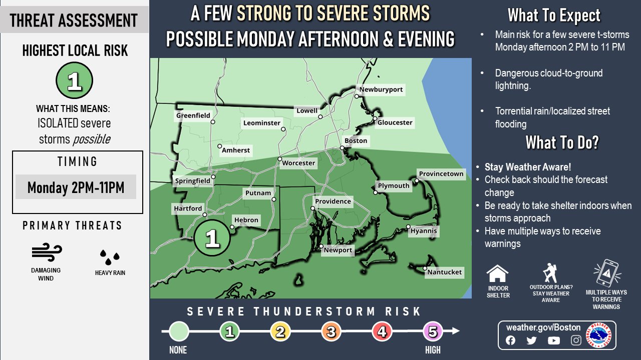 Monday: Morning sun with some afternoon clouds and a few showers or thunderstorms. High 75-82.