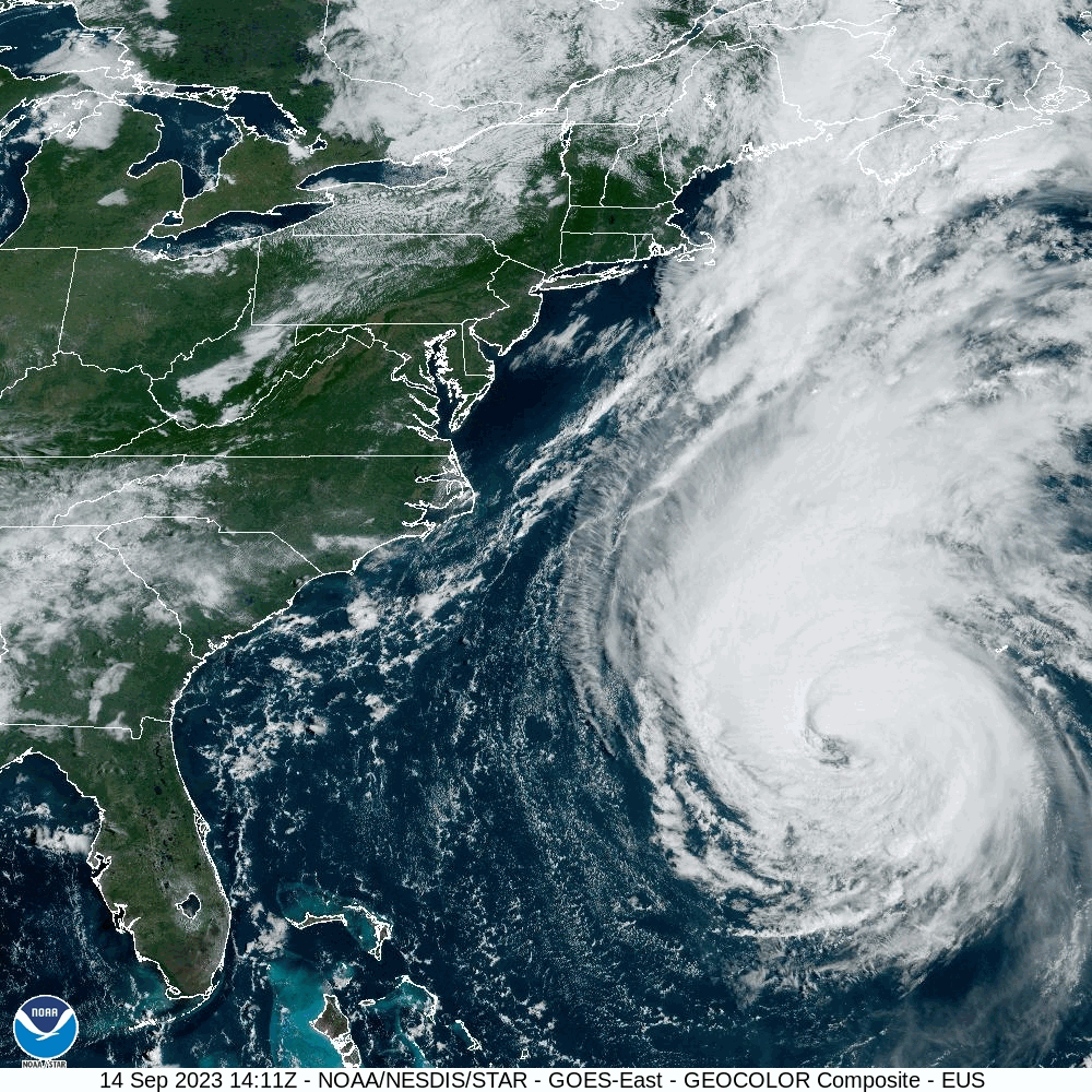 Lee is passing well west of Bermuda this afternoon. Loop provided by NOAA.