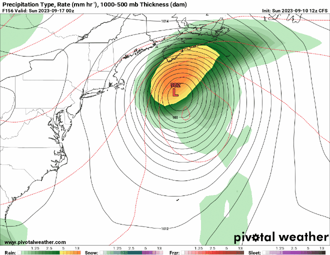 Where will Lee be on Saturday? The answer to that question has a big impact on the forecast. Images provided by Pivotal Weather.