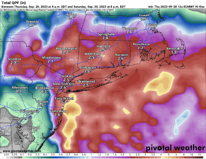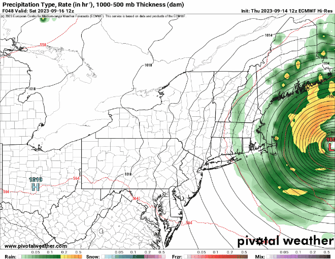 Most of the models keep Lee well east of the region, with rain mostly along the coast Saturday morning. Images provided by Pivotal Weather.