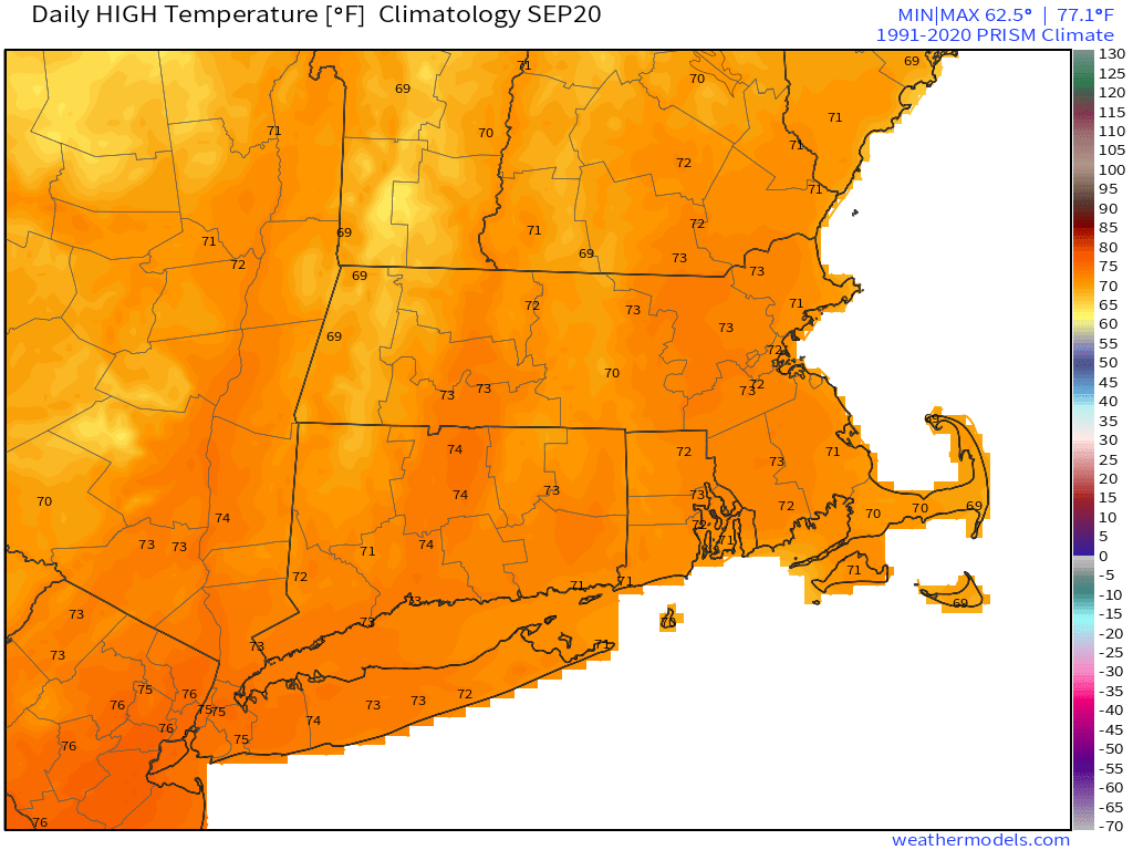 Normal high temperatures for the end of September are in the upper 60s. Image provided by Weathermodels.com