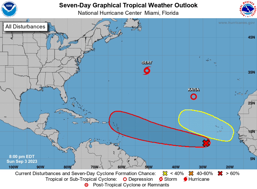 Hurricane Lee will be grabbing headlines for the next several days and rightfully so. As of 11am, Lee had maximum sustained winds near 105 mph, making it a Category Two hurricane. It was centered about 870 miles east of the Northern Leeward Islands, moving toward the west-northwest at 15 mph. There is little wind shear over Lee, and extremely warm waters that extend deep into the ocean, which means conditions are ideal for Lee to continue to rapidly strengthen, and the forecast from the National Hurricane Center calls for Lee to become a Category 5 hurricane with winds near 160 mph by Friday evening. Lee should continue on a west-northwest track, passing north of the Caribbean this weekend. After that, things get a little trickier. Lee will likely start to see its intensity fluctuate over the weekend as eyewall-replacement cycles begin to develop. As for its track, a west-northwest track will continue into the weekend, but it will start to slow down as it reaches the western edge of a ridge of high pressure. At this point, a turn more toward the northwest or north will likely develop. When that turn takes place will be key to the forecast next week. There has already been considerable hype on the internet about Lee threatening the East Coast next week. We’ll just say this. It is FAR too early to speculate on where Lee will be heading 7-10 days from now. Is there a chance Lee could threaten the East Coast or Atlantic Canada? Yes, there is, but it’s not a likely scenario at this point. Even if it does threaten the East Coast, it is not likely to be the Category 5 monster it will develop into this weekend.