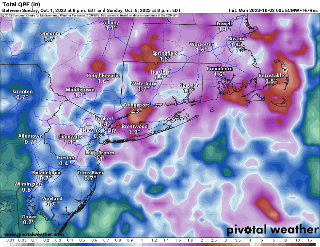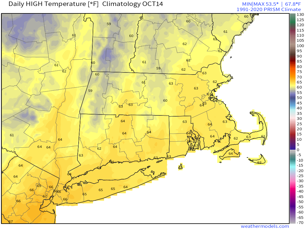 Monday: Periods of rain and showers, ending late in the day. High 48-55 north of the Mass Pike, 56-63 south of the Pike.