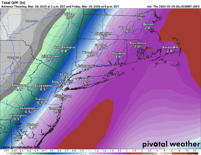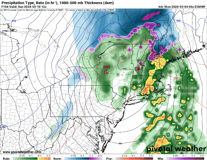 Happy Opening Day to all who celebrate! As the Red Sox begin their campaign in Seattle, expect the roof to be closed this evening as some rain is likely with temperatures in the upper 40s. We’re also expecting rain around here this evening and tonight as low pressure rides up the East Coast along a frontal boundary. Some of the rain will be heavy, with flood watches in effect for most of the region. Many rivers and streams are running high due to recent rain, and this will only worsen the situation. Rain will gradually end on Friday as the system pulls away, but with colder air filtering in behind the storm, the rain may mix with or even change over to wet snow before ending. It will also be quite windy as the storm system continues to strengthen. High pressure builds in for Saturday with sunshine along with windy and seasonably cool conditions. A weak system will pass south of the region Saturday night, but with drier air in place, we’ll just see some clouds as it passes by. High pressure returns for Sunday and Monday with dry and seasonable weather, but clouds will start to move back in later Monday ahead of the next storm system headed our way.