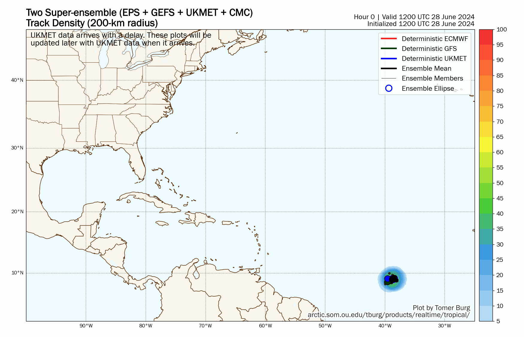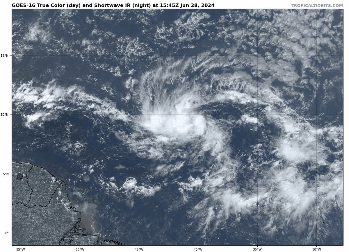 As of 5pm, the National Hurricane Center has initiated advisories on newly-formed Tropical Depression Two. It was centered about 1225 miles east-southeast of Barbados, moving toward the west at 21 mph. Maximum sustained winds were near 35 mph. The system should gradually strengthen, likely becoming Tropical Storm Beryl later tonight or Saturday, while heading off toward the west-northwest. It will likely become a threat to the Windward Islands by late Sunday or early Monday, but as of now, there are no watches or warnings in effect. Once it passes the islands, it should continue west-northwestward across the Caribbean, but obviously other factors can impact the exact track that it takes, as well as the intensity the storm reaches. Given that these forecasts have considerable uncertainty beyond 3-4 days, we won’t even begin to speculate on where it might head.