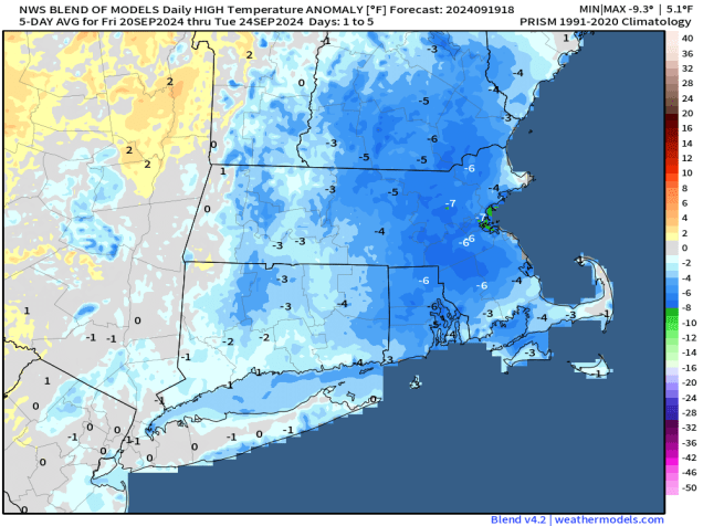 The week starts off with high pressure in control, keeping us dry and seasonably cool, but sunshine will be limited. The combination of east to northeast winds off the Atlantic and high clouds streaming in from what’s left of Helene will result in gray skies for the most part, with a little fog developing each morning as well. A cold front moves in on Wednesday, but it will only be accompanied by a few showers, so much of the region may remain dry once again, but temperatures should turn milder with southwest winds ahead of the front. High pressure builds in behind the front with clearing and mild temperatures for Thursday and Friday. Another cold front will move early in the weekend with some more showers, then high pressure returns for the end of the weekend.