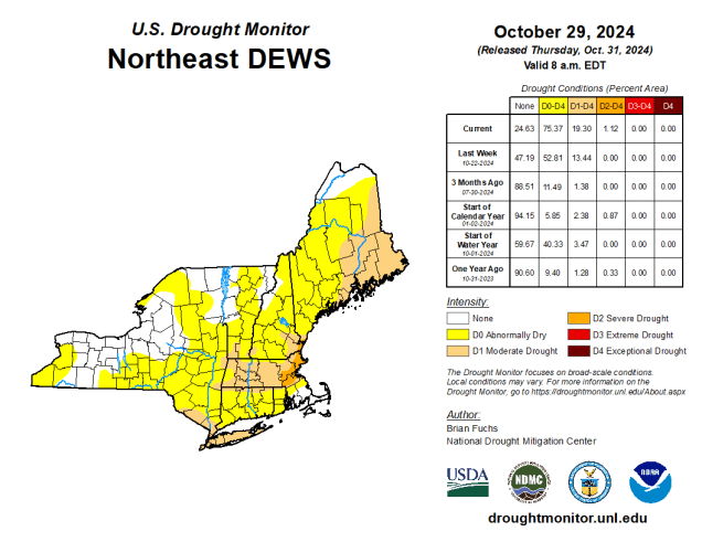 Drought conditions continue to expand across the Northeast. Image provided by the National Drought Mitigation Center.
