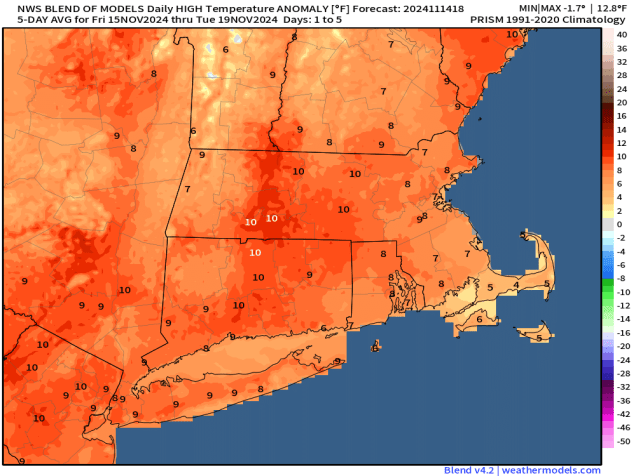Low pressure will move out of the Tennessee Valley tonight and head towards Southern New England, passing near or just south of the South Coast on Thanksgiving Day. For most of us, we’ll see rain developing around daybreak, and ending in the evening, but across the hills from Worcester County into the Monadnocks of southwestern New Hampshire, some snow is likely, with a few inches possible. Across the rest of southern New Hampshire, we may see the rain start as snow in the morning, but it should quickly change to rain, with little to no accumulation. Farther north, especially north of Concord, NH, a few inches may accumulate, before a change to rain occurs. The system starts to pull away Thursday evening, with the rain ending before midnight, though we could see some flakes mix in as the rain winds down.