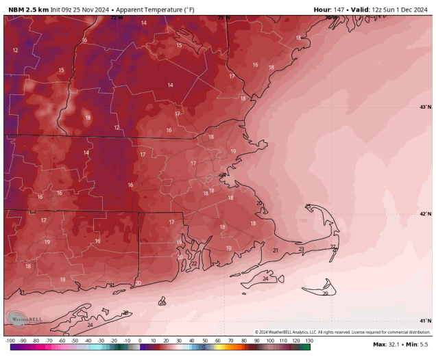 Saturday: Sunshine and some afternoon clouds, slight chance for a few flurries, especially across the Outer Cape, breezy, colder. High 37-44.