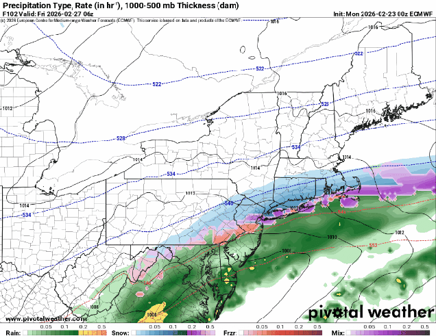 Friday: Snow or rain ends early, skies start to clear out in the afternoon. High 34-41.