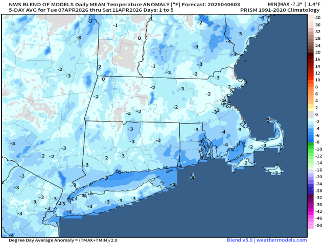 High pressure starts to build in today with drier and cooler conditions, but with an upper level disturbance moving across the Northeast we’ll still have a decent amount of cloudcover, especially during the afternoon. Another weak system moves across the region on Tuesday producing some rain or snow showers, as temperatures will remain quite cool. We’re not expecting any accumulation, as temperatures will likely be above freezing, even where there is some snow. High pressure returns for Wednesday with plenty of sunshine, but temperatures remaining on the cool side. As the high moves off to the east, winds will shift into the southwest, allowing warmer air to move in for Thursday and Friday, though it will remain cooler across the South Coast and Cape Cod, as water temperatures are still only in the middle 40s off the South Coast. For Saturday, we’re watching the potential for high pressure over eastern Canada to send another backdoor cold front today, ending our brief warmup. That front should start to lift northward again on Sunday, but how quickly it does so will determine how quickly we’ll warm back up.