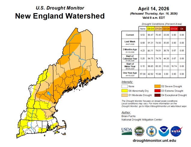 A frontal system remains in place this evening, separating unseasonably warm weather across southern and western portions of the region from much cooler air to the north. Another wave of low pressure will ride along that front, bringing in another round of showers and thunderstorms this evening and tonight. This will help to put a dent in the ongoing drought, and also keep the brush fire danger on the low side. A cold front moves through on Friday, producing a few more showers, but finally bringing an end to our up and down temperatures we’ve had over the past week. Now, they’ll just be down. Saturday looks to be a much cooler day behind the front, with plenty of clouds around, and possibly a few showers or some drizzle, mainly across eastern areas, thanks to onshore flow off the chilly Atlantic. A stronger cold front will head towards the region on Sunday. Some occasional showers are likely during the daytime, with a steadier rain likely accompanying the front in the evening. A rather chilly airmass will filter in behind the front for Patriots Day. An upper-level disturbance will cross the region during the day, generating some clouds, and possibly a few sprinkles or even some snow flurries. While the weather may not be ideal for the runners in the Boston Marathon (or the fans for the Red Sox traditional 11:05am game), it could be a lot worse.