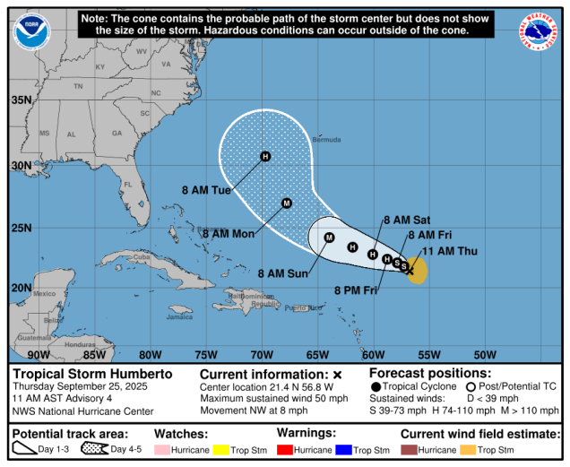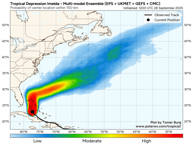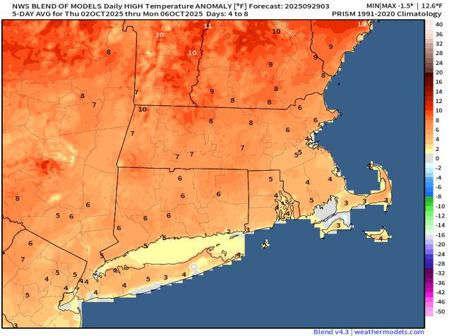 By late Wednesday, we’ll start to watch a low pressure area developing in the Tennessee Valley. It should head northeastward, but there is still quite a bit of uncertainty with this system. We’ll likely see some rain move in from this system on Thursday, ending Friday morning, which would result in dry weather for trick-or-treating Friday evening. But that’s not the entire story. It’ll likely be rather breezy with this storm, taking down a lot of the remaining leaves on the trees. As a result, if we get enough rain, it’ll result in some slick roads with the wet leaves covering them, as well as areas of poor drainage flooding. But wait, there’s more! We’ll also be keeping an eye on what remains of Hurricane Melissa (more on that in a moment). The system should be heading well out to sea, but it could be just close enough to the East Coast for our developing system to tap into it, and infuse some tropical moisture, which would result in much heavier rain from this system. This scenario is not looking that likely at this time, but it is a possibility, so we felt the need to mention it. An upper-level low pressure area will then move in for the weekend with breezy and cooler conditions.