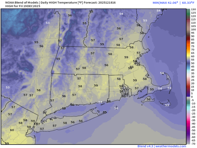 Highs in the 50s on Friday? It’s possible. Image provided by weathermodels.com