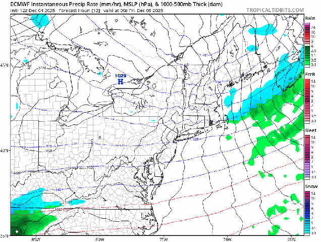 Don’t be surprised if there are some snow showers around Friday afternoon. Loop provided by WeatherBell.